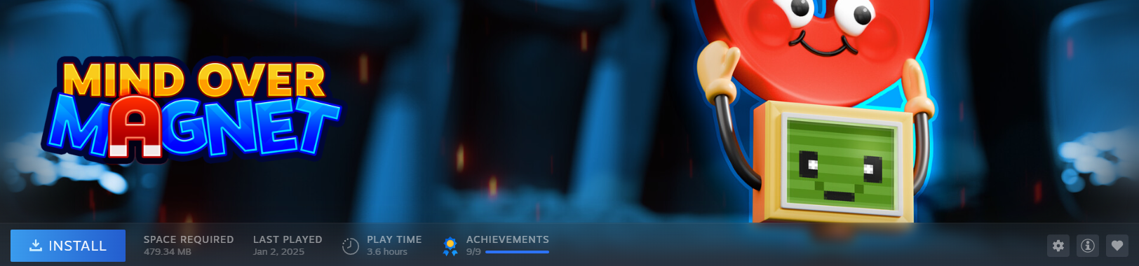 That search led to Mind Over Magnet, a puzzle game developed by a single person, Mark Brown, over three years. The game features over 50 single-screen puzzles built entirely around one core mechanic: magnetism. No new systems are introduced throughout the game, only creative applications of the same mechanic across increasingly complex puzzles.